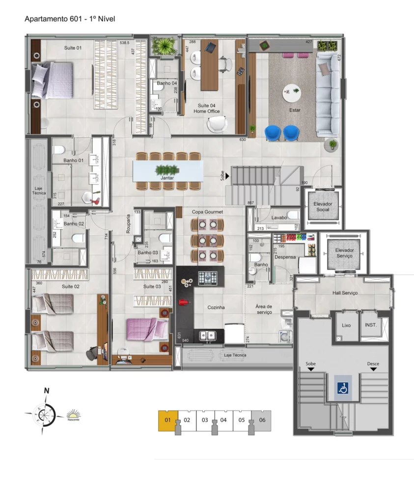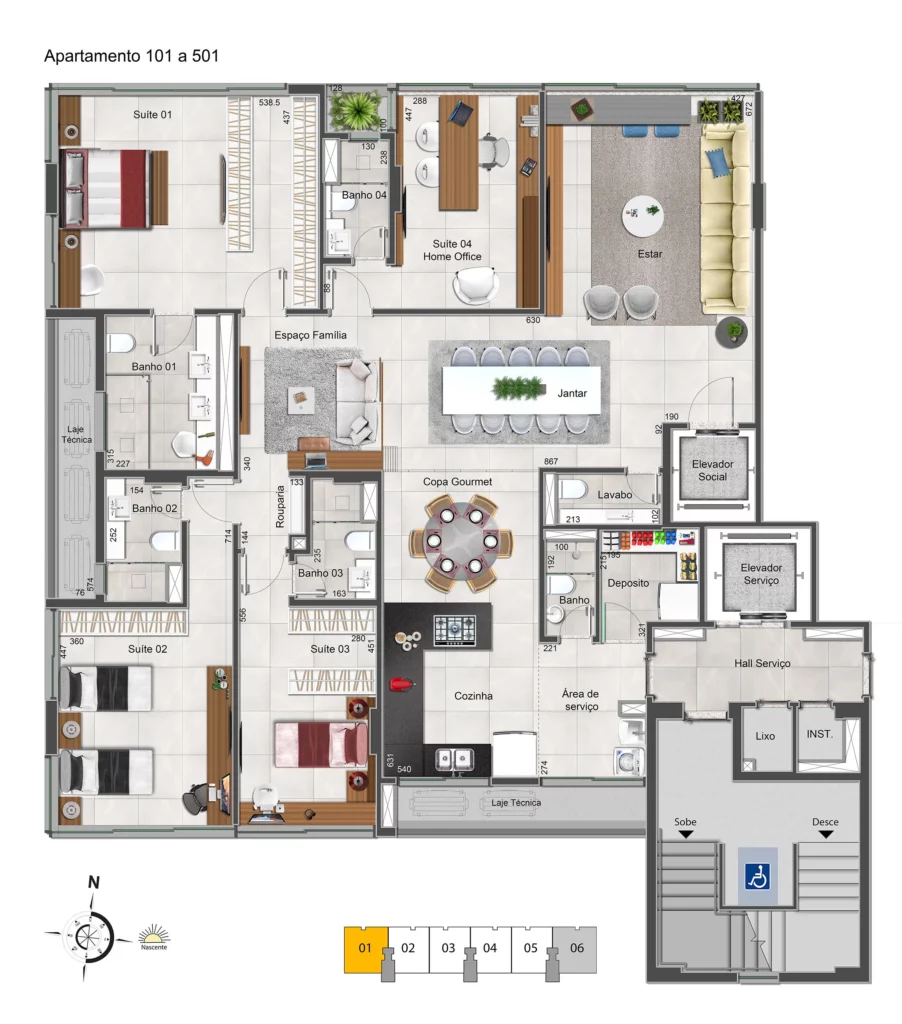 Localizado na SQNW 303, Bloco B, no Setor Noroeste, o My Design reúne apartamentos de 4 suítes, prontos para morar, com áreas privativas entre 197 m² e 212 m², 4 vagas de garagem e box privativo de 7 m² no subsolo. Pensado para quem busca mais espaço e conforto no dia a dia, o projeto oferece unidades realmente vazadas, com boa incidência de luz natural, ventilação cruzada e vista definitiva. A área comum conta com lazer completo – incluindo piscina, academia, espaço gourmet, brinquedoteca e ambientes para convivência – além de facilidades como car wash, bicicletário estruturado e infraestrutura para recarga de veículos elétricos, em um endereço de alto padrão cercado por áreas verdes e com fácil acesso a serviços, escolas e comércio.