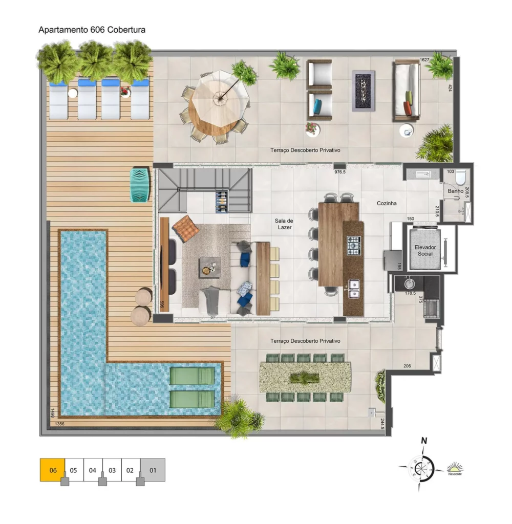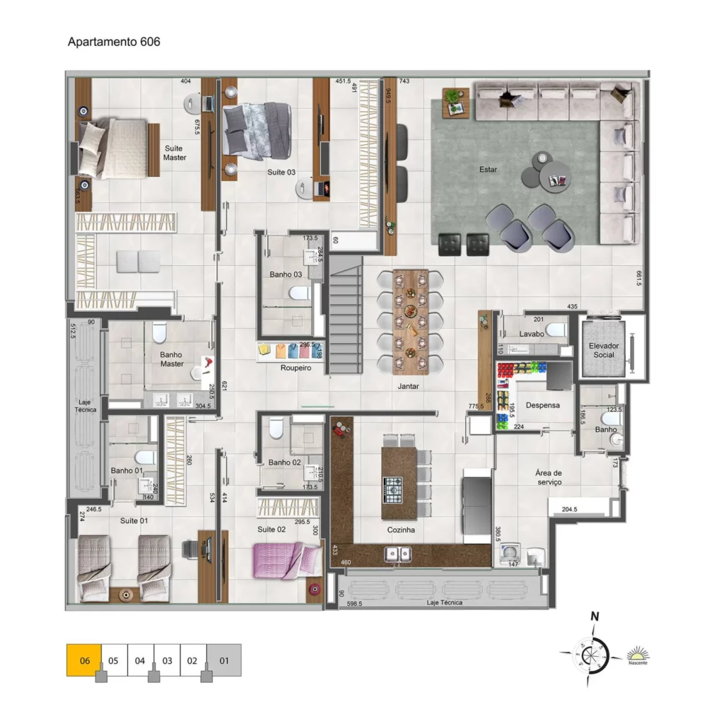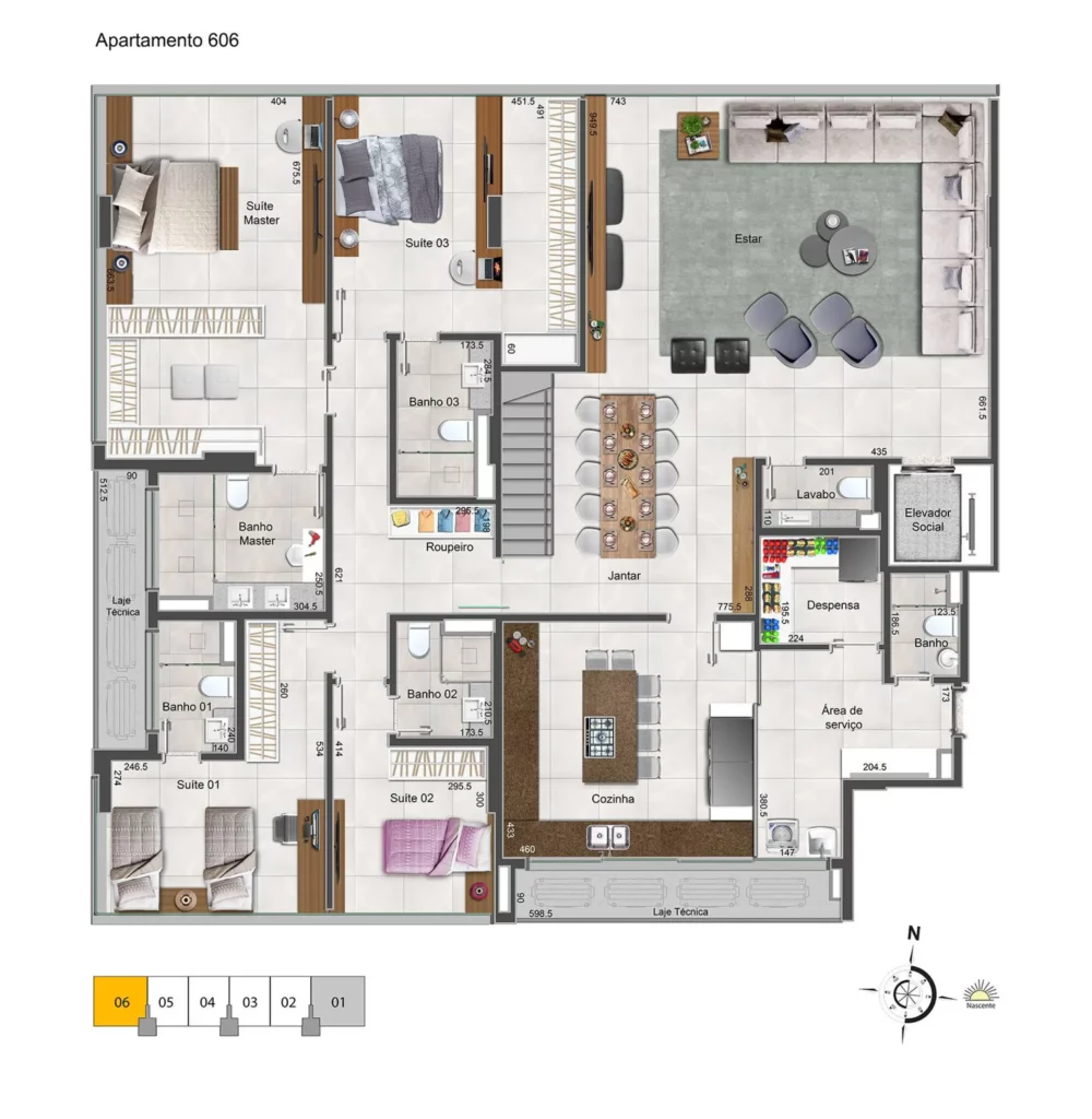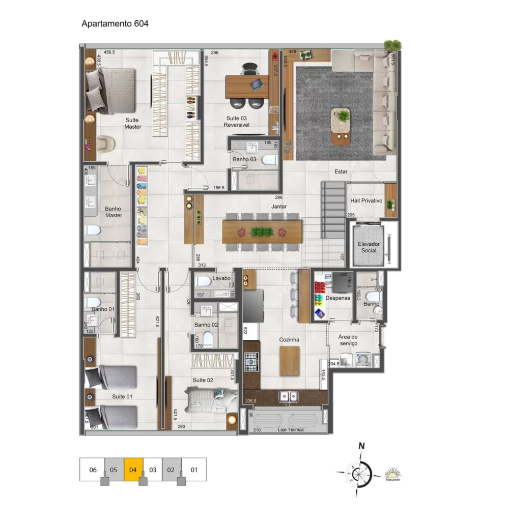 Localizado na SQNW 304, o High Design é um residencial 4 suítes de alto padrão com espaço pensado para integrar sala, varanda gourmet e cozinha em um único ambiente amplo, sem barreiras visuais. O resultado é uma planta realmente vazada, com ventilação cruzada, excelente iluminação natural e vista definitiva, consolidando o empreendimento como um marco da Linha Design no bairro.